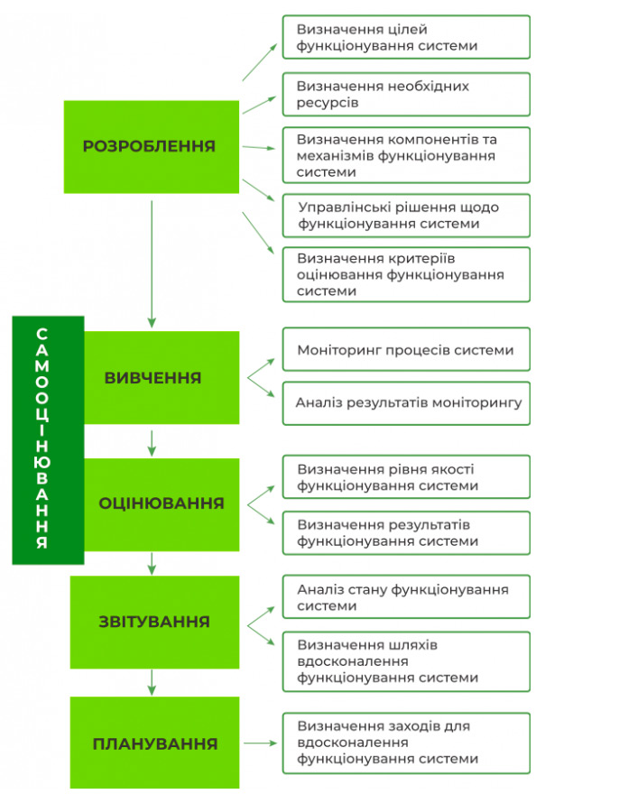 1.3. У закладі освіти здійснюється самооцінювання якості освітньої діяльності на основі стратегії (політики) і процедур забезпечення якості освіти.
